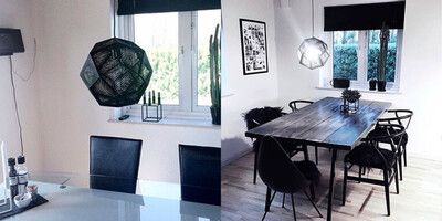 Jannie har valt en Etch Taklampa i svart från Tom Dixon som matbordslampa i sitt vardagsrum. Den valdes för att den kompletterar den minimalistiska nordiska stilen som syns i många hem idag. Taklampan Etch är känd för sitt vackra ljus och framför allt för att kasta de vackraste skuggorna i rummet. Vi får ofta frågan om lampan passar som matbordslampa då den lyser åt alla håll, men beroende på val av glödlampa kan man få ljuset i exakt den riktning man vill, och i det här fallet vore det självklart med en som kastar ljuset på bordet. Taklampan Etch passar också bra ovanför soffbordet eller i ett hörn, och många använder den också i hallen och sovrummet.