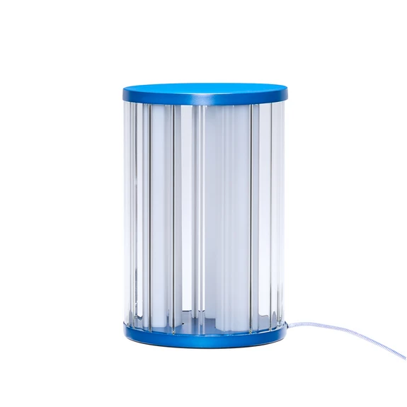 LED-bordslampan Aru kombinerar modern och skandinavisk design med en harmonisk färgskala i blått och klart. Tillverkad av järn och glas smälter den sömlöst in i olika inredningskoncept. Den inbyggda LED-ljuskällan ger ett jämnt ljus och framhäver lampans rena formspråk.