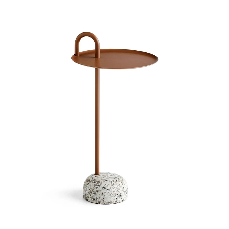 Bowler sidobordet från HAY imponerar med sin minimalistiska formgivning och kombinationen av robust granit och pulverlackerat stål. Materialvalet ger bordet stabilitet och ett exklusivt utseende. Den bruna färgen sätter en stilfull, naturlig accent och kan integreras flexibelt i olika rumsdesign.