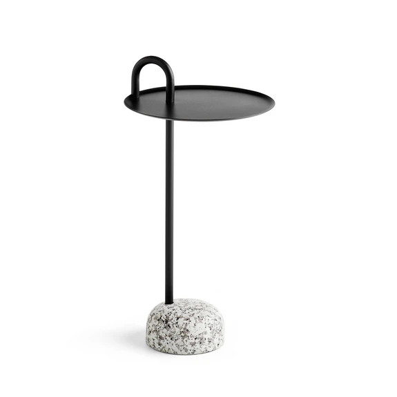 Bowler sidobordet från HAY imponerar med sin kombination av pulverlackerat stål och granit, som förenar robusthet med elegant estetik. Den minimalistiska designen och den svarta färgen gör att det smälter in harmoniskt i olika vardagsrum, från vardagsrummet till matsalen.