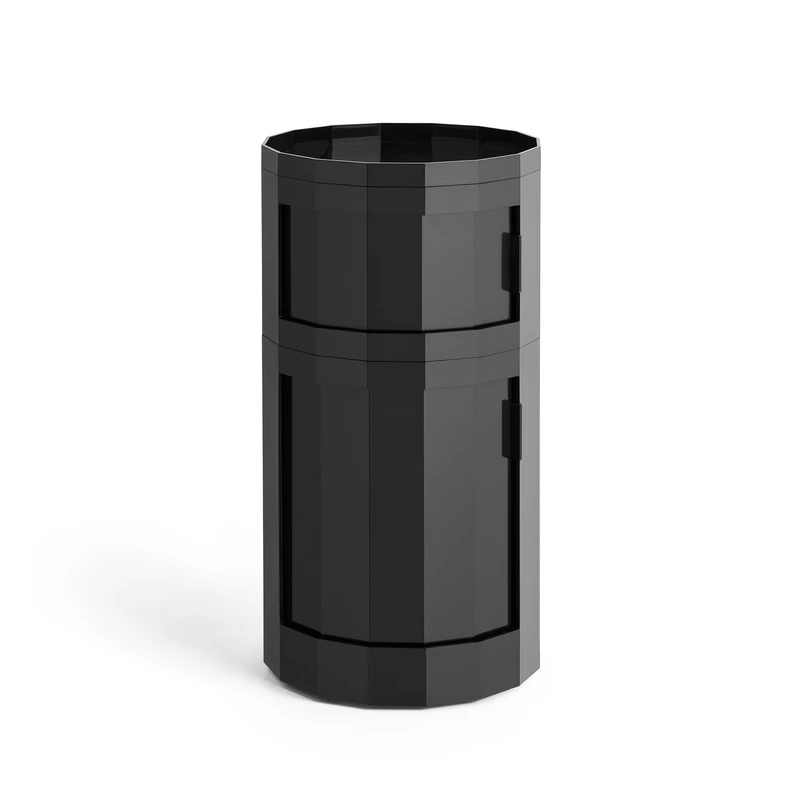 Facet Cabinet 110 från HAY övertygar med sin skulpturala, rena design och högkvalitativa finish i återvunnet ABS. Designern Stefan Scholten utvecklade skåpet inspirerad av sitt eget behov av ett mobilt möbel som är snyggt, flexibelt och samtidigt stilfullt. Den antracitfärgade, facetterade ytan ger en elegant accent i vardagsrummet, matsalen eller sovrummet.