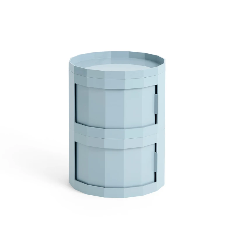 Tillverkat av högkvalitativt, återvunnet ABS i mjukt ljusblått, smälter skåpet sömlöst in i vardagsrummet, matsalen eller sovrummet. Den tidlösa färgsättningen och det tydliga formspråket skapar en harmonisk rumseffekt, medan den genomtänkta konstruktionen garanterar lång livslängd och mångsidigt användningsområde. En möbel som elegant förenar estetisk raffinemang och praktisk flexibilitet.