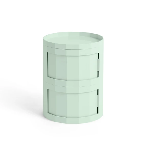Tillverkat av högkvalitativ ABS och i tidlös mintgrön färg passar skåpet harmoniskt in i vardagsrum, matsal eller sovrum. Den facetterade ytan, den integrerade svängdörren och möjligheten att montera hjul ger flexibilitet och rörlighet. På så sätt blir skåpet en stilfull, hållbar följeslagare som på ett elegant sätt förenar funktionalitet och design.