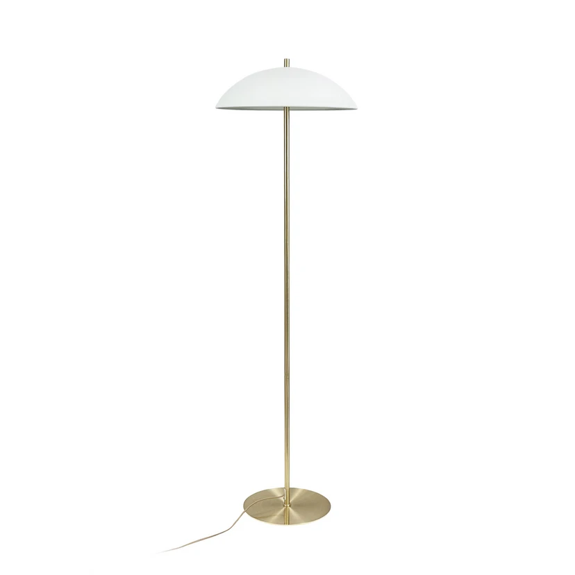 Golvlampan Globus från Dyberg Larsen förenar skandinavisk enkelhet med högkvalitativa material. Tillverkad av metall och designad i en harmonisk kombination av beige och mässing, passar den perfekt in i olika inredningskoncept. Oavsett om den placeras i vardagsrummet, matsalen, hallen eller sovrummet sätter lampan stilfulla accenter och skapar en behaglig ljusatmosfär.