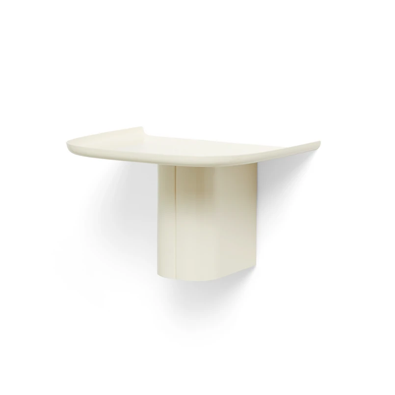 Korpus vägghylla från HAY, designad av Andreas Bergsaker, står för minimalistisk design och mångsidig funktionalitet. Målet med designen var att skapa en robust, hållbar vägghylla av återvinningsbart aluminium som perfekt kombinerar estetik, materialkvalitet och vardaglig användbarhet. I krämfärg sätter hyllan diskreta, eleganta accenter som stilfullt kompletterar moderna hallar eller sovrum.