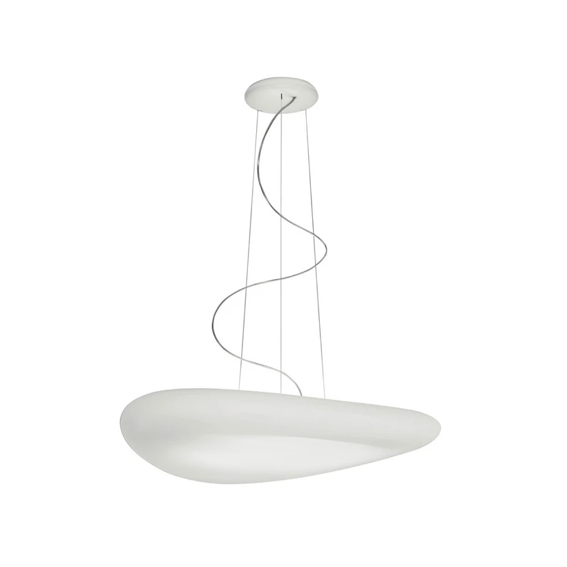 Dimningsfunktionen möjliggör extern styrning via fas- eller bakkantsdimmer, så att ljusstyrkan kan anpassas individuellt. Stabilitet och elegans förenas genom bärande stålkablar och en transparent strömkabel som betonar lampans svävande karaktär.