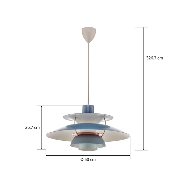 PH 5 finns i ett brett utbud av vackra färger och de olika färgtonerna i lampans fem lampskärmar skapar en dynamisk graderad effekt, som förstärker den visuella effekten av pendeln.