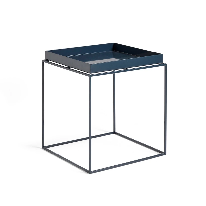 HAY sidobord Tray står för minimalistisk design och genomtänkt funktionalitet. Det är tillverkat av högkvalitativt, pulverlackerat stål och erbjuder stabilitet och en hållbar konstruktion. Den mörkblå ytan sätter eleganta accenter och harmonierar med olika inredningsstilar.